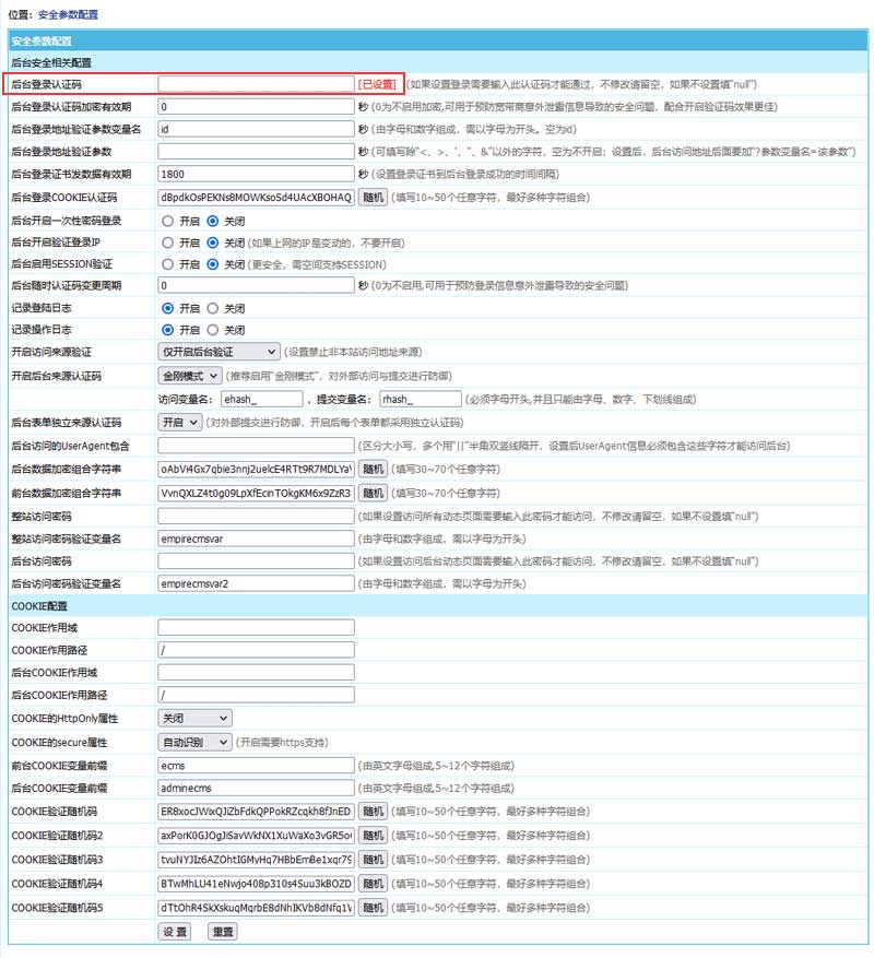 $ecms_config['esafe']['loginauth']='登录认证码内容';