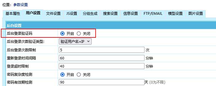 1、开启登录验证码:后台>系统>系统设置>系统参数设置>用户设置