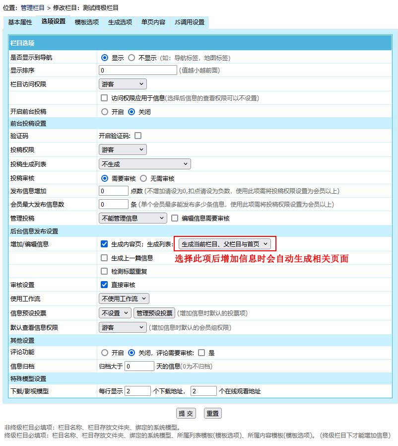 方法三、设置相关页面为动态页:动态页面就不需要生成静态页面操作步骤。